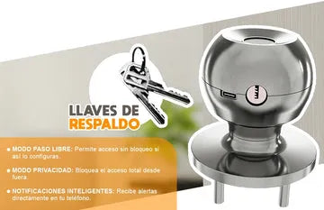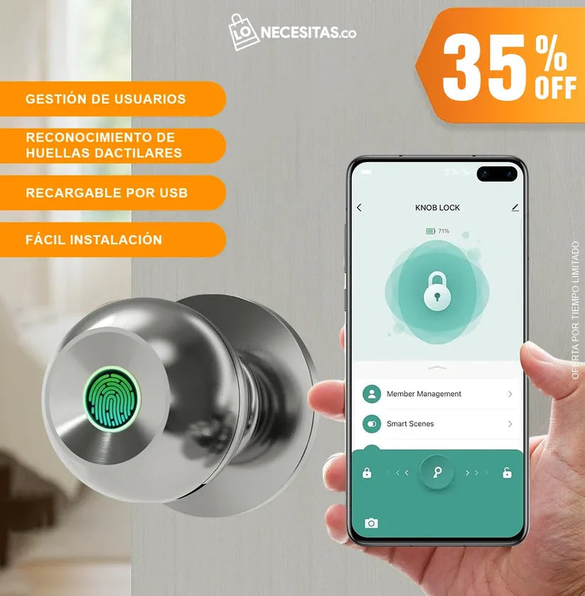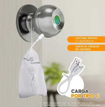 Además de ofrecerte seguridad biométrica de alta tecnología, este pomo inteligente se instala fácilmente como cualquier otro. Su diseño moderno combina con cualquier puerta, y su batería recargable asegura meses de uso sin preocuparte por reemplazos.