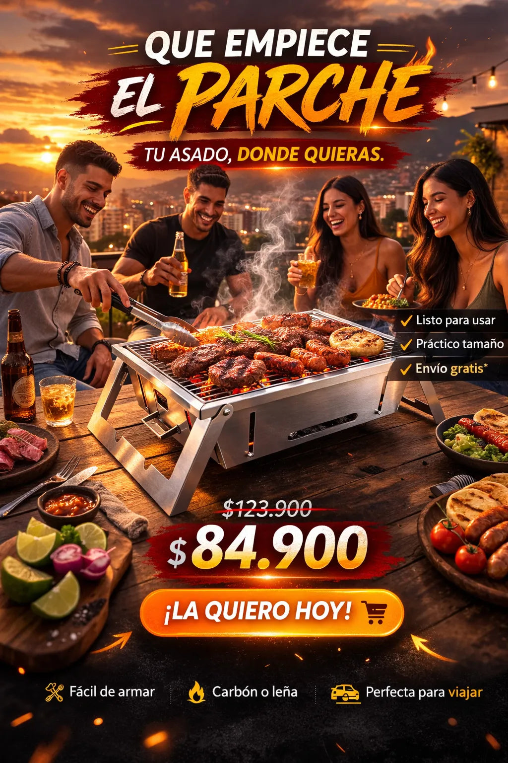 Vive el asado sin patio grande ni parrillas costosas. Solución práctica y portátil.