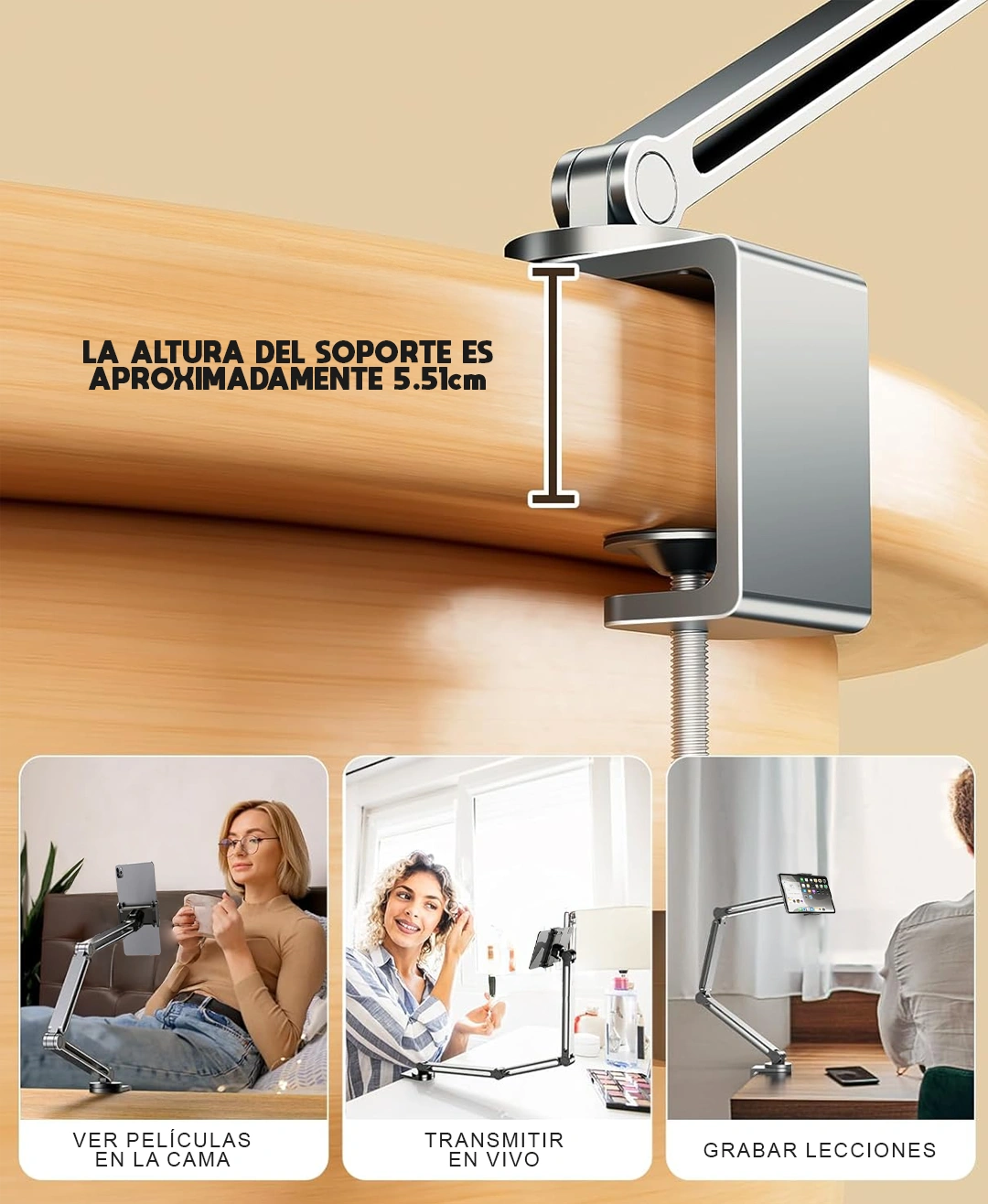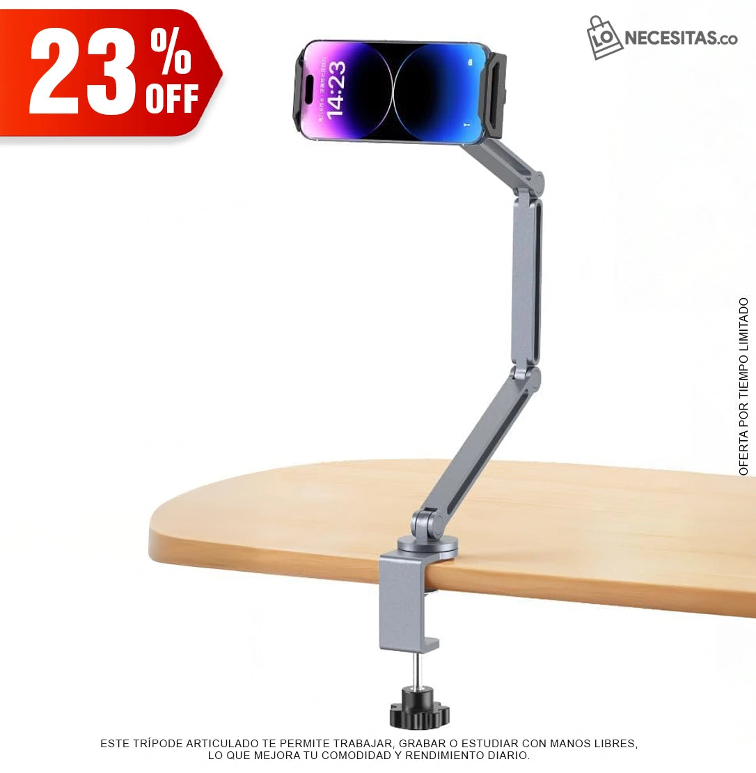 Imagina grabar tus recetas, transmitir tus clases o hacer tus videollamadas sin tener que sostener el celular con una mano. Este trípode articulado te permite tener un espacio funcional, organizado y profesional en cualquier escritorio.